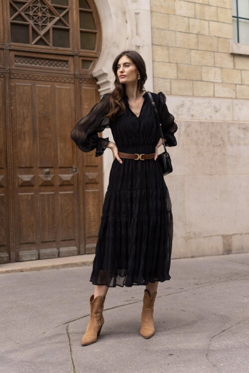 Musta tyylikäs pitkä mekko