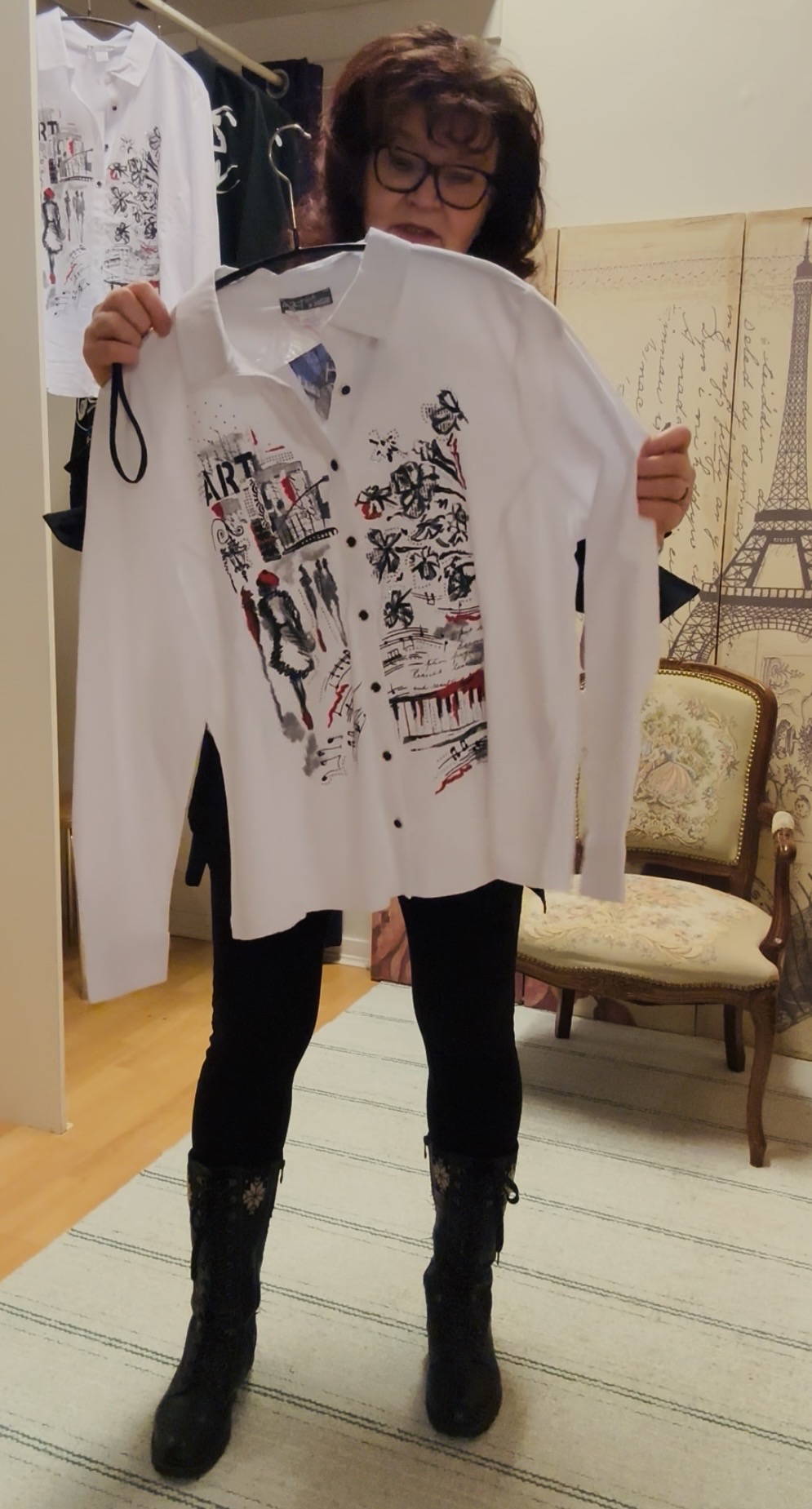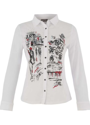 Tyylikäs ja persoonallinen valkoinen pitkähihainen kauluspaita, jonka etuosaa koristaa taiteilija Allayn Stevensin teos “Piano Blues III”. Klassinen kauluksellinen malli yhdistyy näyttävään taideprinttiin, mikä tekee paidasta katseenvangitsijan niin arkeen kuin vapaa-aikaan. Joustava materiaali takaa miellyttävän istuvuuden. Helppo yhdistää farkkuihin tai siisteihin housuihin – täydellinen valinta taiteen ystävälle. 🎨
