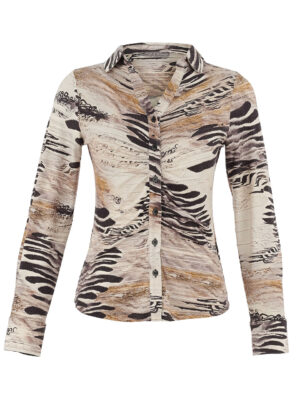 Dolcezzan näyttävä ja persoonallinen kirjavakuvioitu pusero,  jossa yhdistyy elegantti leikkaus ja moderni taide.  Etupuolella on  rypytys ja napit,  jotka tuovat ilmettä ja muotoa.  Klassiset kaulukset.   Puseron pinnalla hehkuu Kuros Navidin taideteoksesta inspiroitu kuosi,  jokainen kappale on oma maalaus.  Mielytyttävä ja laskeutuva materiaali 70% viskoosi,  20% polyesteri,  10% elastani.  Helppo yhdistää niin farkkuihin ja siistimpään alaosaan.  Täydellinen valinta kun haluaat pukeutua taiteella ja tyylillä.  Hienopesu 30C.
