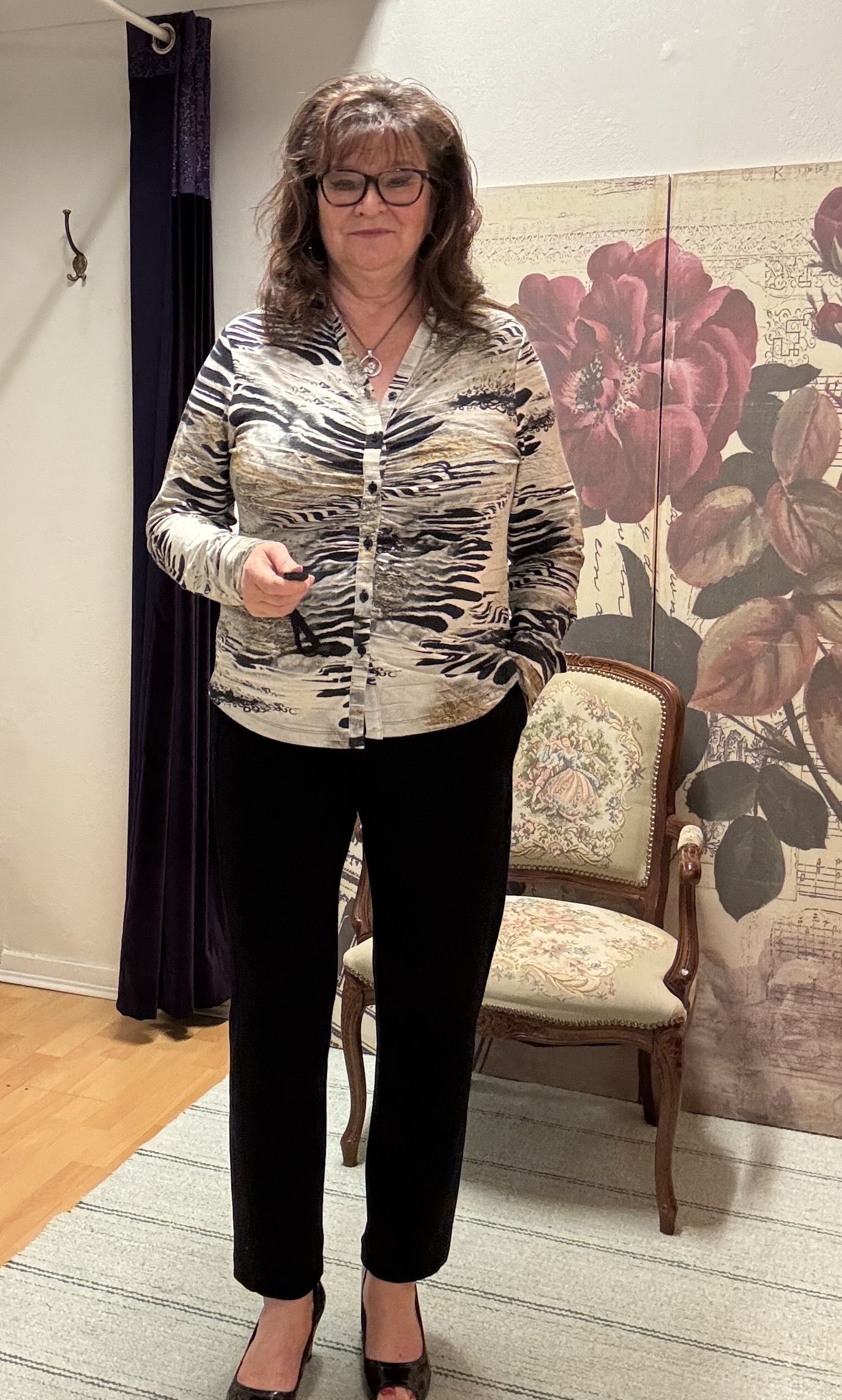 Dolcezzan näyttävä ja persoonallinen kirjavakuvioitu pusero,  jossa yhdistyy elegantti leikkaus ja moderni taide.  Etupuolella on  rypytys ja napit,  jotka tuovat ilmettä ja muotoa.  Klassiset kaulukset.   Puseron pinnalla hehkuu Kuros Navidin taideteoksesta inspiroitu kuosi,  jokainen kappale on oma maalaus.  Mielytyttävä ja laskeutuva materiaali 70% viskoosi,  20% polyesteri,  10% elastani.  Helppo yhdistää niin farkkuihin ja siistimpään alaosaan.  Täydellinen valinta kun haluaat pukeutua taiteella ja tyylillä.
