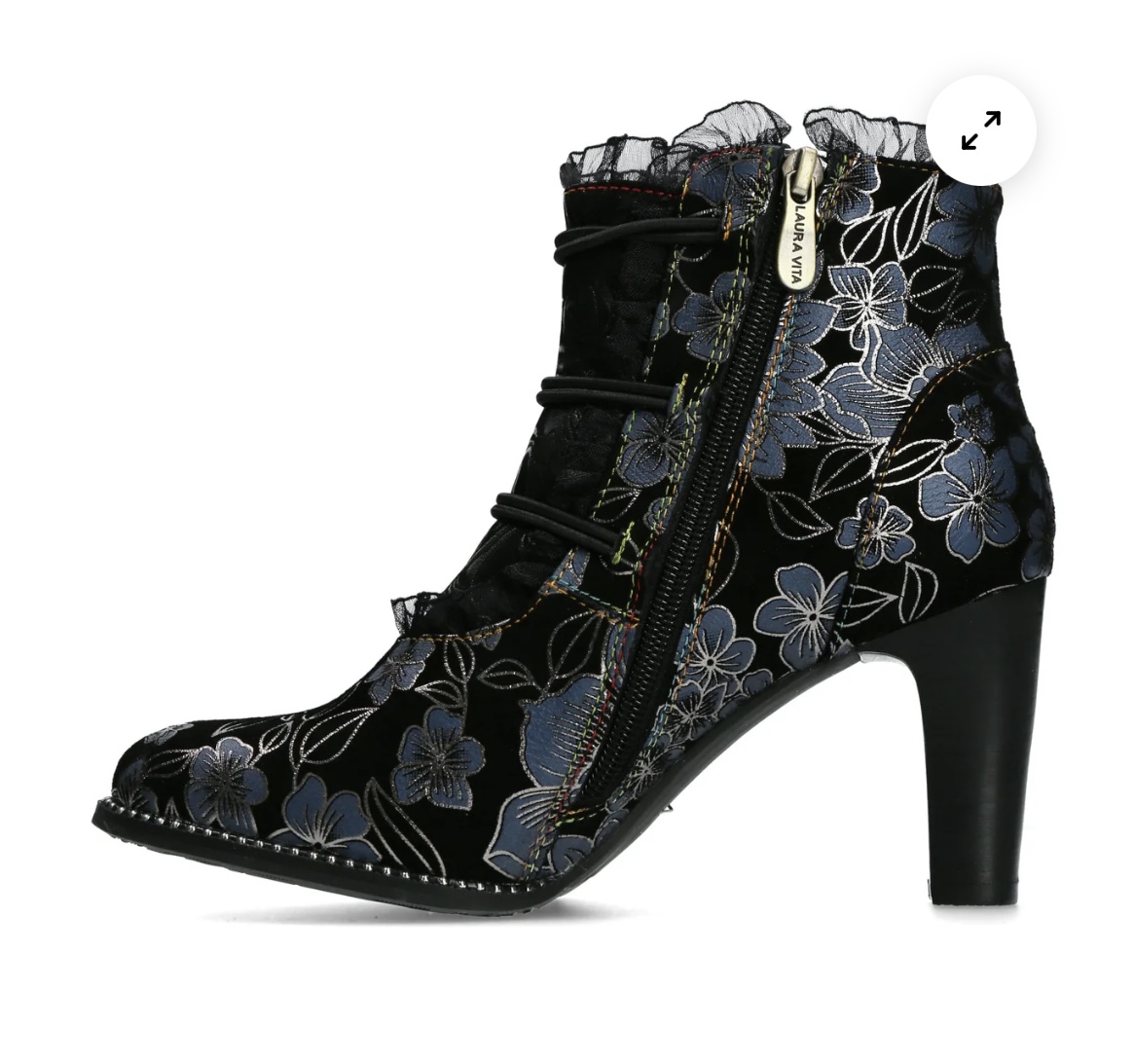 Upeat ja taidokkaasti viimeistellyt Laura Vita Alcbaneo Indigo -nilkkurit tuovat asuusi säihkettä ja persoonallista eleganssia.