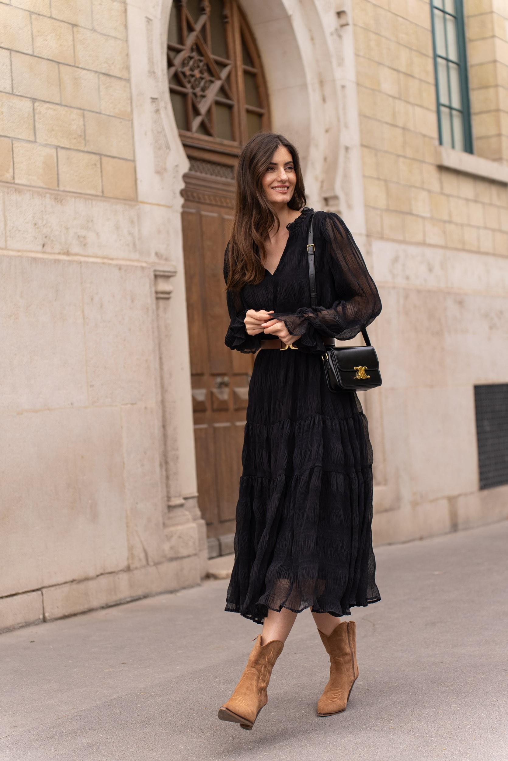 Pitkät, ohuet sifonkihihat tuovat keveyttä ja juhlavuutta
