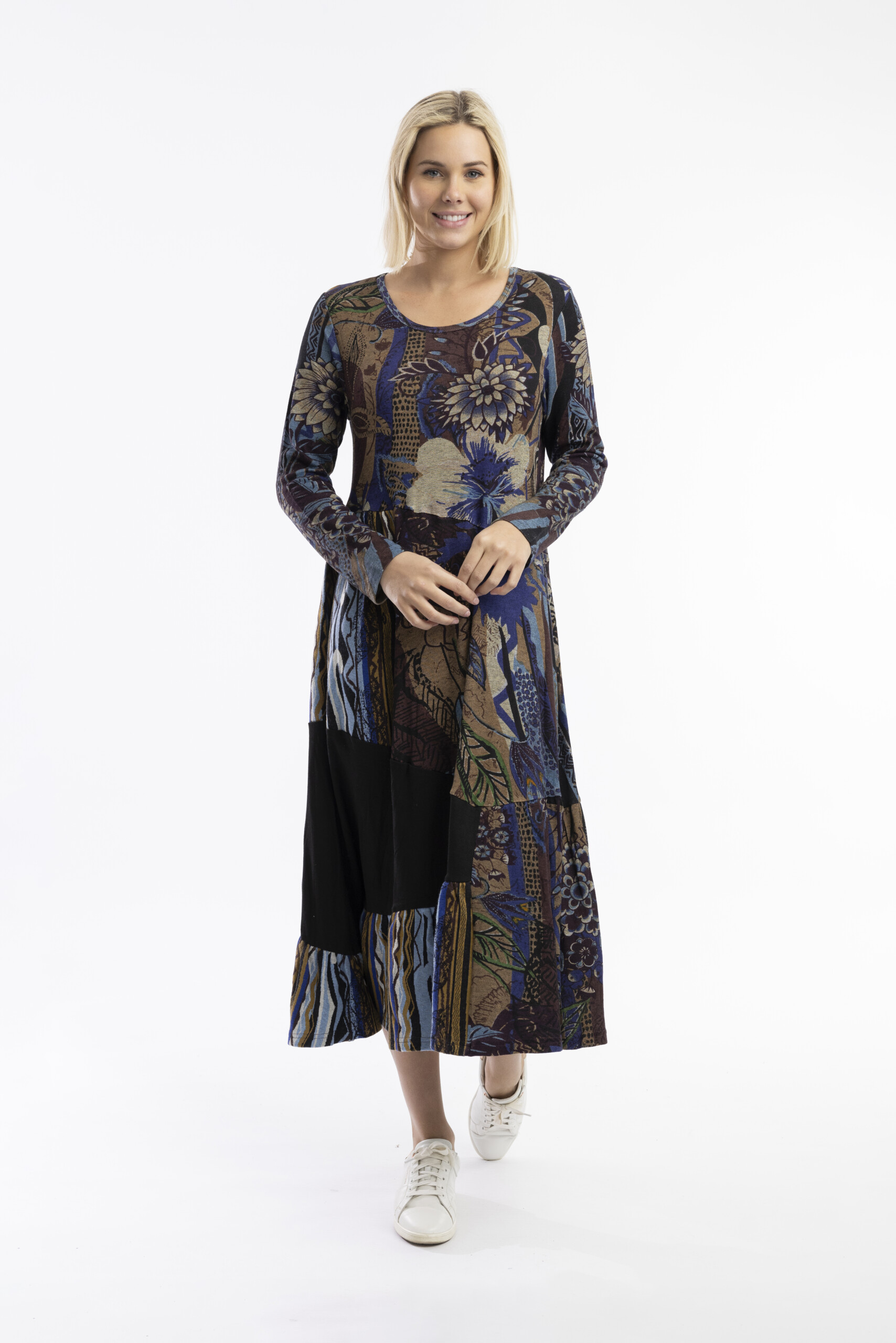 Tyylikäs ja boheemin elegantti Orientique Desert Rose mekko hurmaa sinisen ja ruskean sävyillään ja kauniilla kukka- ja raita somisteillaan.  Kellomainen leikkaus ja pyöreä pääntie luovat naisellisen siluetin. Mekko on valmistettu 100% puuvillasta,  joka on miellyttävä ja hengittävä luonnonmateriaali.  Kahdesta eri kankaasta yhdistetty rakenne antaa asulle persoonallisen ilmeen ja ainutlaatuista tekstuuria.  Mekossa on pyöreä pääntie ja pitkät hihat. Mekon voi kivasti yhdistää nilkkureihin tai tennareihin rennosti arkeen, tai lisää korot ja korut juhlavampaan tyyliin. Orientique on yksi Australian suurimmista luonnonkuituja käyttävistä yrityksistä.   Jokainen kuosi on uniikki, vain Orientiquelle suunniteltu. Hienopesu 30C.