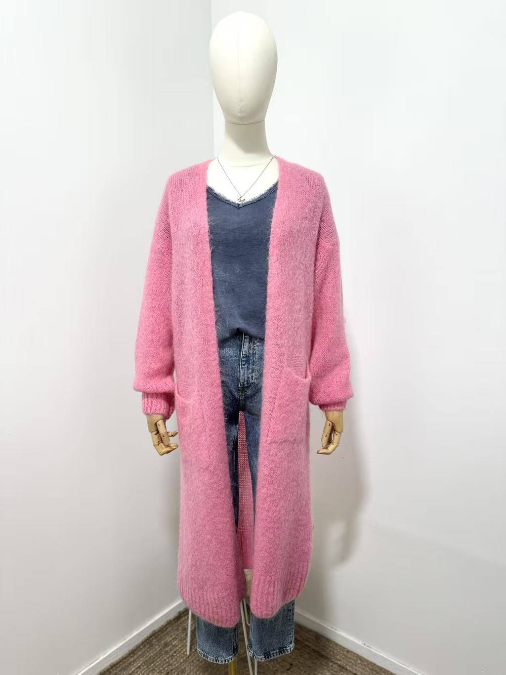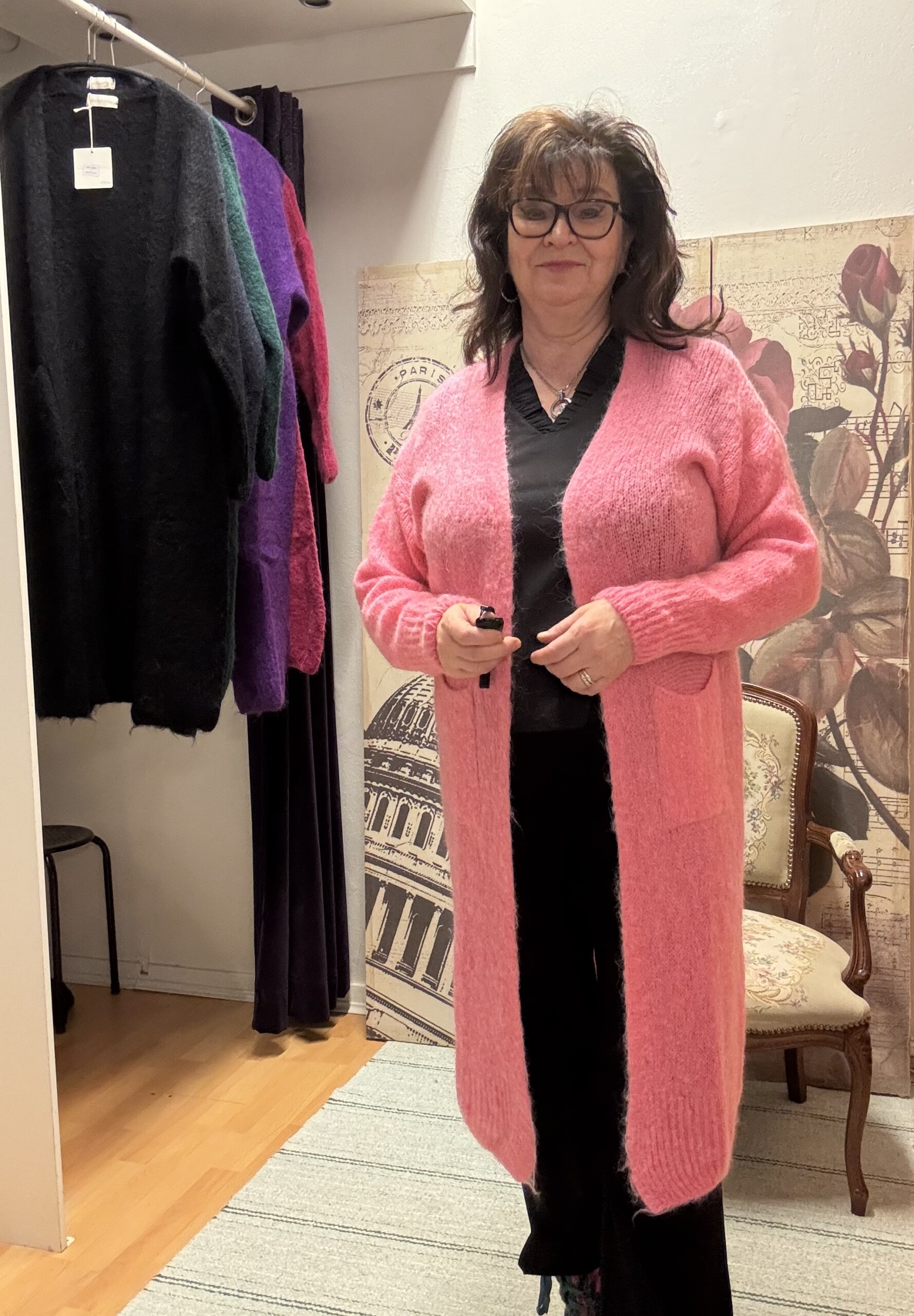 Tyylikäs ja ajattoman klassinen lohevärinen neuletakki tuo lämmintä mukavuutta arkeen ja juhlaan. Neuletakki on pitkä malli ja siinä on käytännölliset taskut. Tämä neuletakki on täydellinen valinta kun haluat yhdistää mukavuuden ja laadun tyylikkäällä tavalla. Villatakki on yhden koon ja sopii parhaiten kokohaarukkaan 36-42. Materiaali ja leikkaus mukautuvat eri vartalotyypeille. Materiaalit on 52% babyalpakkaa, joka on yleellisen pehmeä ja lämmin, 32% polyamidi lisää kestävyyttä, 13% villaa tuo luonnollista lämpöä ja 3% elastani joustavuutta ja istuvuutta. Käsipesu