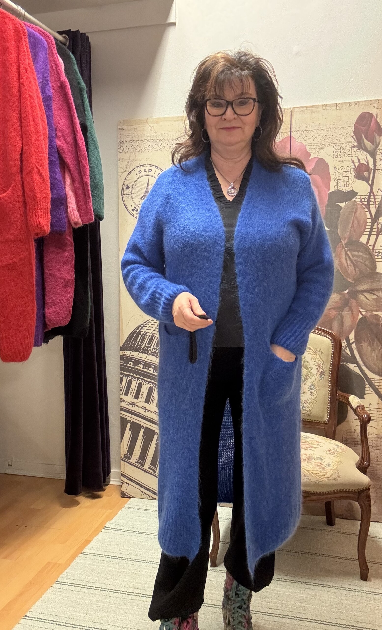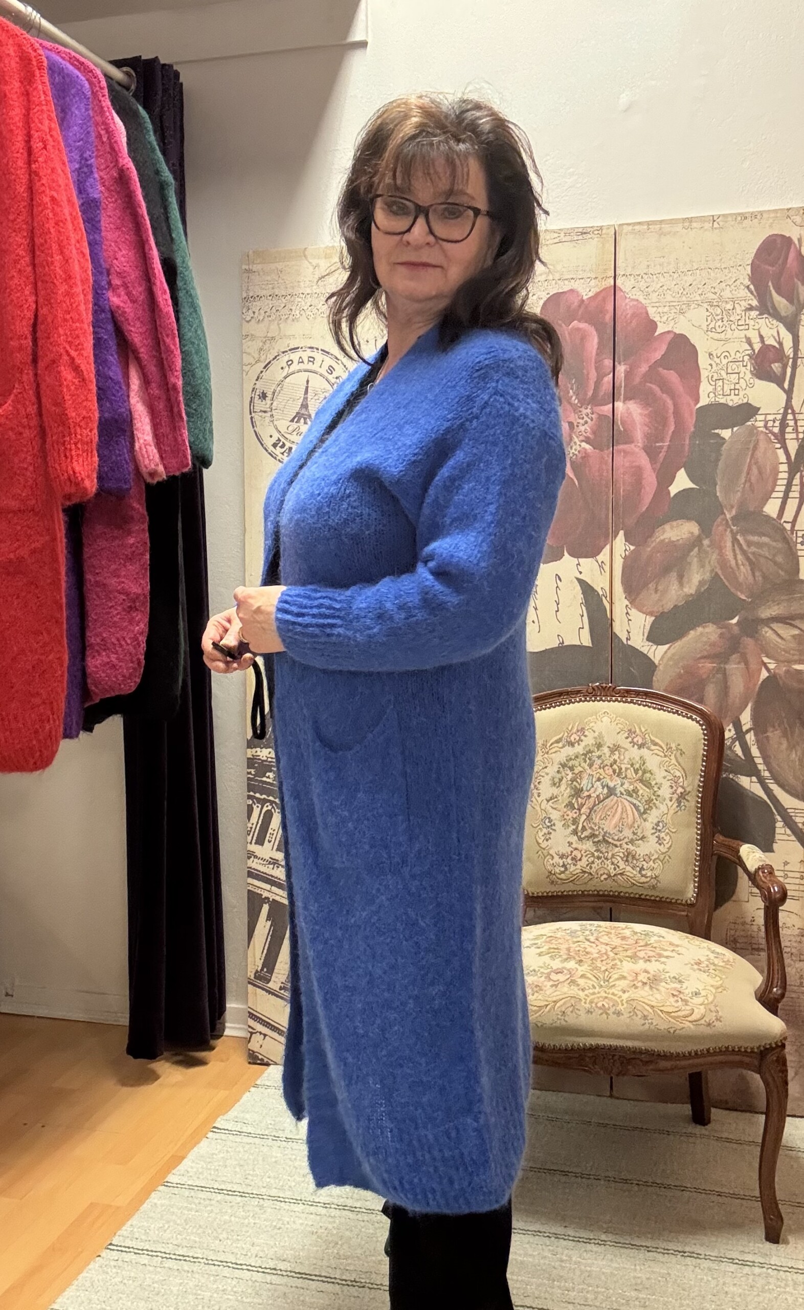 Pitkä neuletakki, sähkönsininen