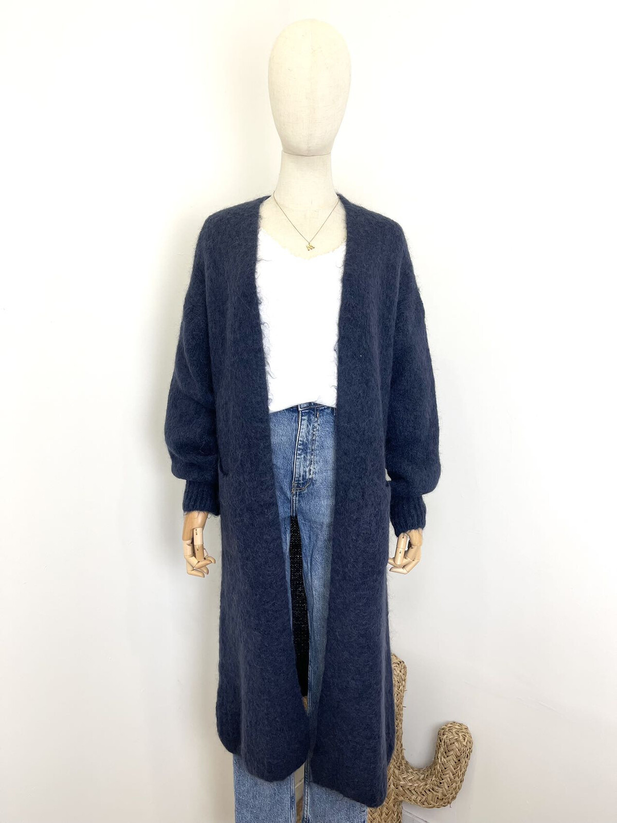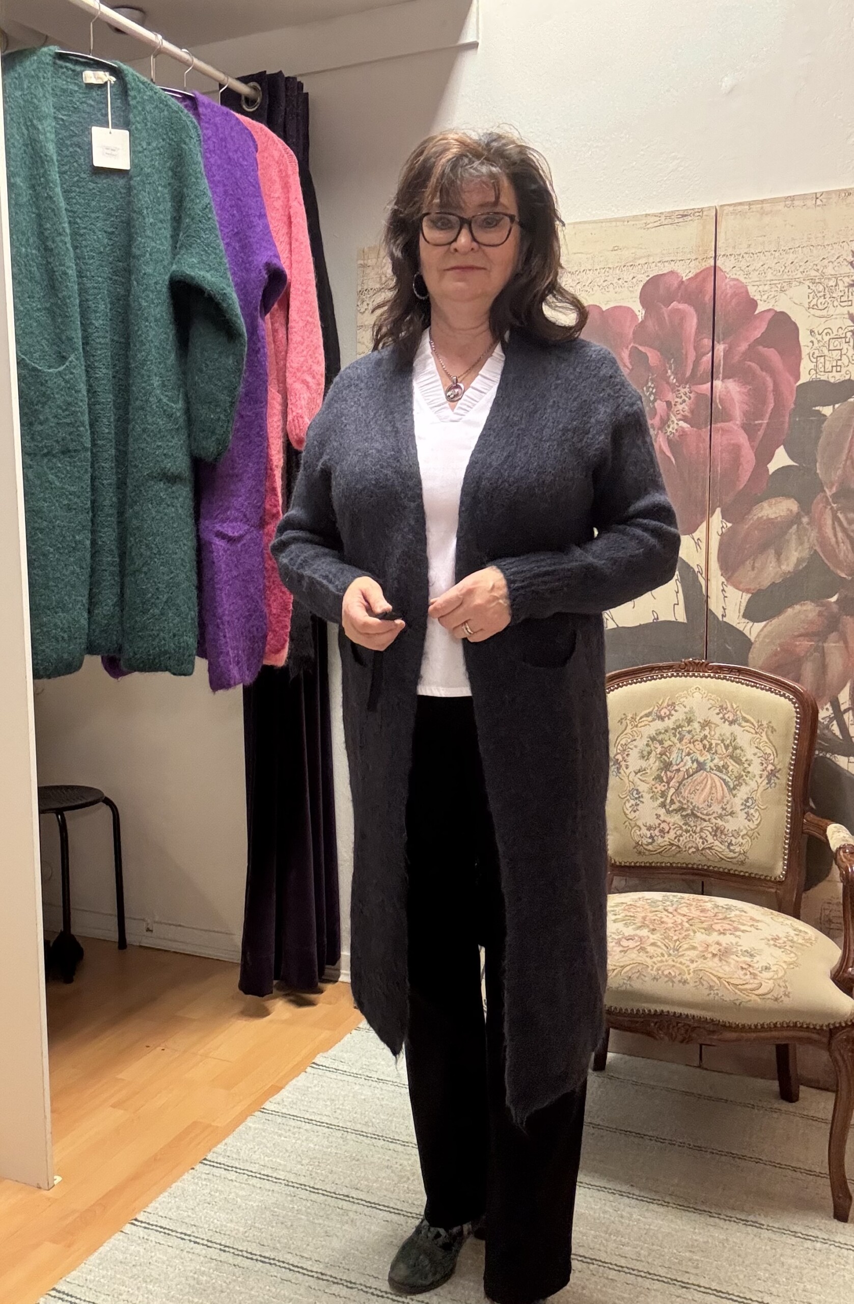 Tyylikäs ja ajattoman klassinen tummansininen neuletakki tuo lämmintä mukavuutta arkeen ja juhlaan. Neuletakki on pitkä malli ja siinä on käytännölliset taskut. Tämä neuletakki on täydellinen valinta kun haluat yhdistää mukavuuden ja laadun tyylikkäällä tavalla. Villatakki on yhden koon ja sopii parhaiten kokohaarukkaan 36-42. Materiaali ja leikkaus mukautuvat eri vartalotyypeille. Materiaalit on 52% babyalpakkaa, joka on yleellisen pehmeä ja lämmin, 32% polyamidi lisää kestävyyttä, 13% villaa tuo luonnollista lämpöä ja 3% elastani joustavuutta ja istuvuutta.